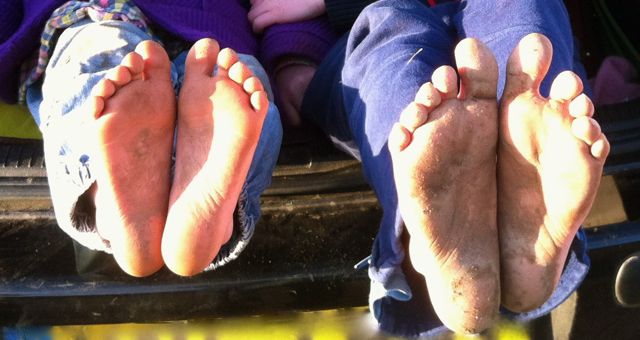 Of course it took longer to get back but the kids managed to do the whole journey in bare feet – in February!